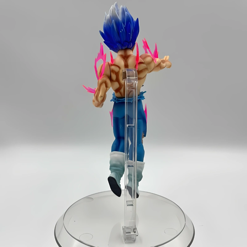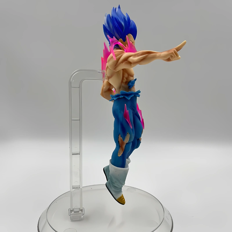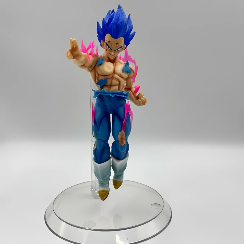 Experience the raw intensity of the Saiyan Prince with this masterfully crafted collectible of Vegeta in his Super Saiyan Blue Evolved state. This figure captures Vegeta at the peak of his power during the Tournament of Power, characterized by his deep cerulean hair and the fierce pink energy of his rising aura. Standing defiantly in a mid-air “floating” pose, this piece perfectly represents Vegeta’s relentless spirit, showcasing the battle damage that comes with shattering one’s own limits.