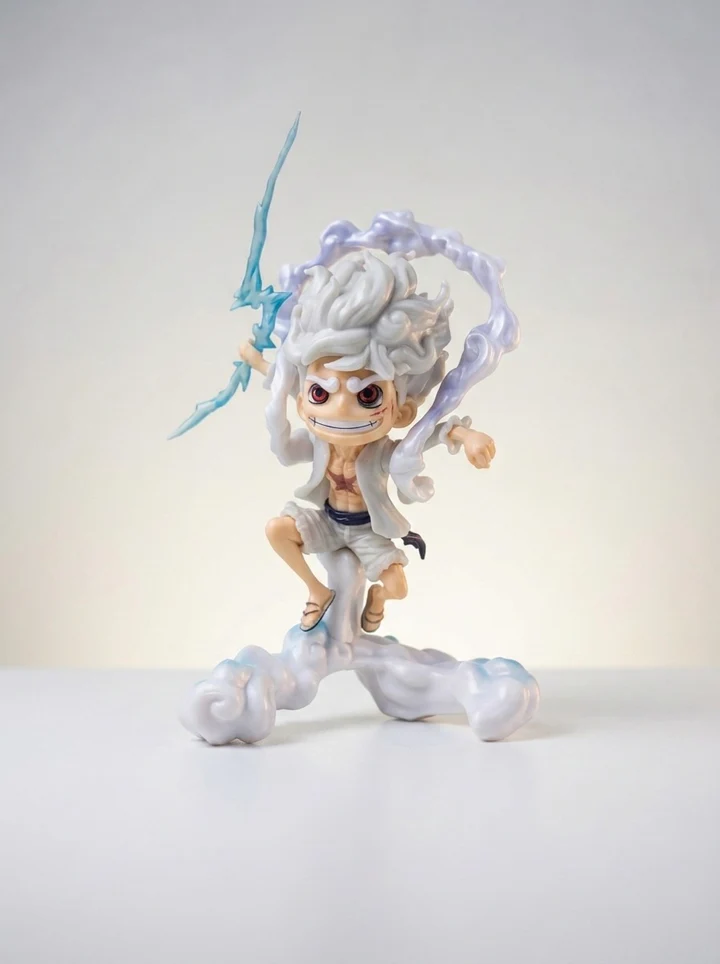 Awaken the legendary power of the Sun God Nika with this captivating stylized collectible. This figure brilliantly represents Monkey D. Luffy in his peak Gear 5 transformation from the world-renowned series One Piece. Capturing the chaotic joy and boundless freedom of this “Warrior of Liberation,” the design features his iconic white hair and glowing red eyes, reimagined in a premium “chibi” aesthetic. With a wide, mischievous grin and a dynamic pose that defies gravity, this piece embodies the ultimate spirit of adventure and the peak of Luffy’s strength.