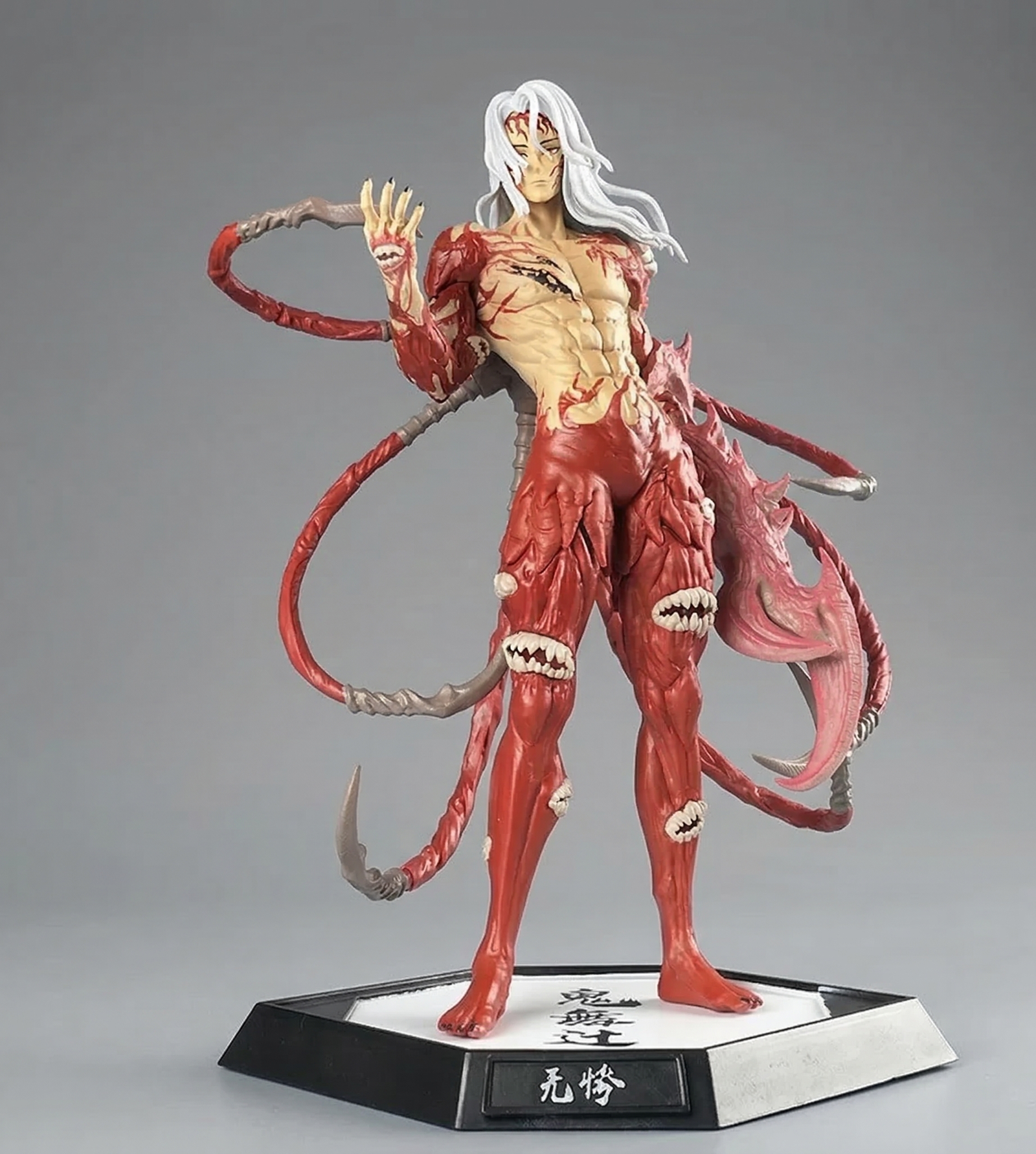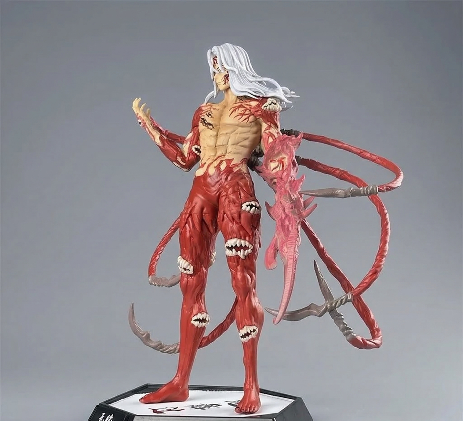 Embodying the terrifying elegance and overwhelming power of the King of Demons, this premium statue captures Muzan Kibutsuji in his final, combat-evolved state from the climax of Demon Slayer: Kimetsu no Yaiba. This form showcases the character’s true, monstrous nature—trading his human disguises for a physique built for absolute slaughter. With long, flowing silver hair contrasting against a blood-red, muscular anatomy, this figure radiates an aura of cold, calculating menace. It is a definitive piece for collectors who appreciate the darker, more visceral side of the series’ artistry.