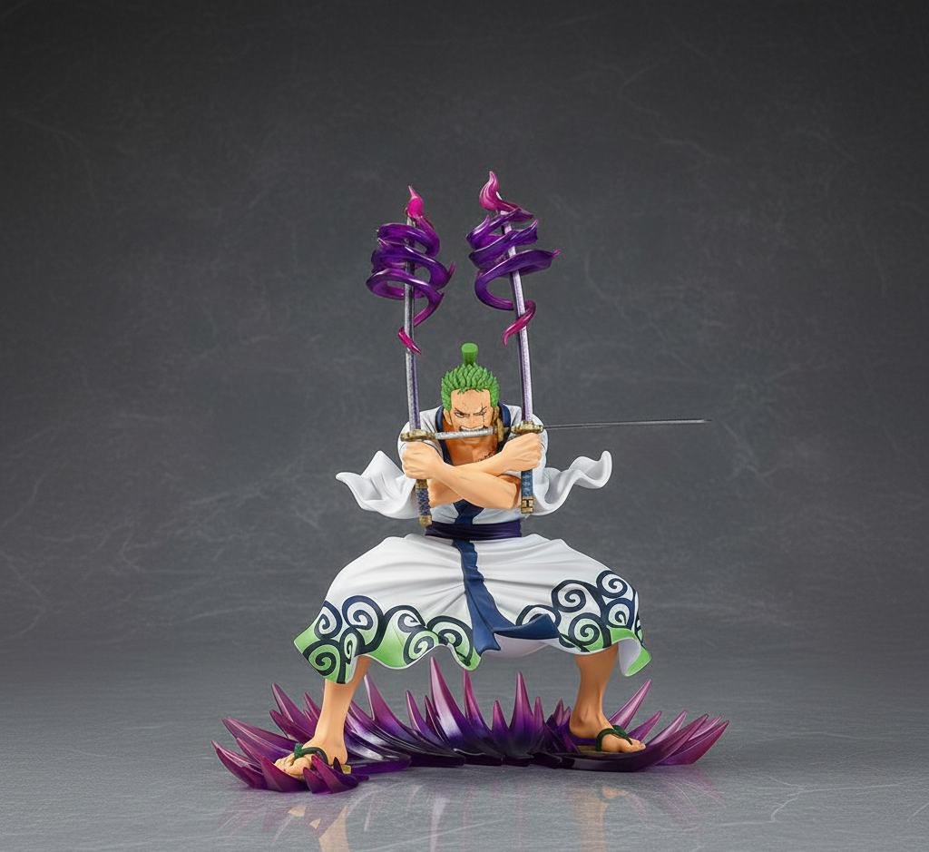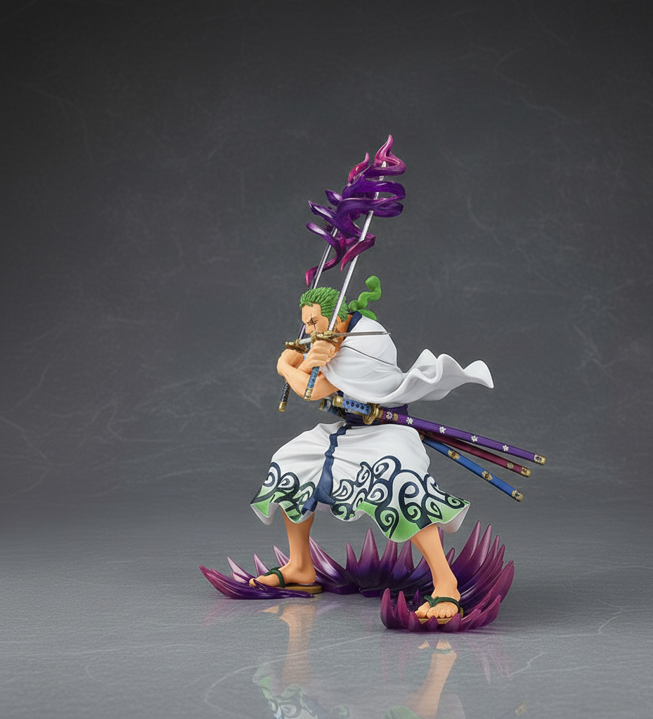 This premium collectible immortalizes Roronoa Zoro in his formidable King of Hell state, a moment of peak power and untamed willpower from the One Piece Wano Country arc. The figure radiates the sheer intensity of the world’s most ambitious swordsman, capturing the lethal grace and supernatural aura that define his Three-Sword Style. This is not just a figure; it is a centerpiece that embodies the spirit of a warrior who has mastered both his blades and his Haki.