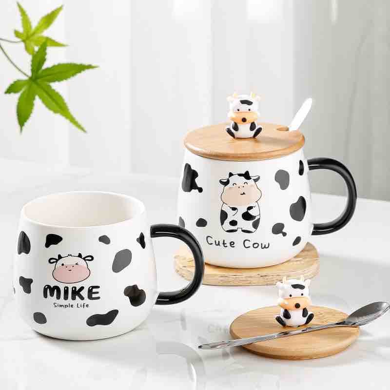 Feature Details Character Mike / “Cute Cow” Original Characters Theme Simple Life / Animal Kawaii Material High-grade Ceramic, Natural Wood, Stainless Steel Design Style Rounded “Belly” Mug with 3D Figurine Lid Color Palette Monochrome Black & White with Soft Pink accents Estimated Capacity 350ml – 400ml Recommended Age 12+ (Collector & Home Use)