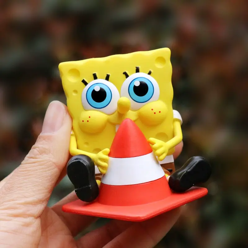 Vibrant, High-Contrast Palette: The figure utilizes a bold “SpongeBob Yellow” combined with the striking red and white of the traffic cone accessory, ensuring it stands out in any display.