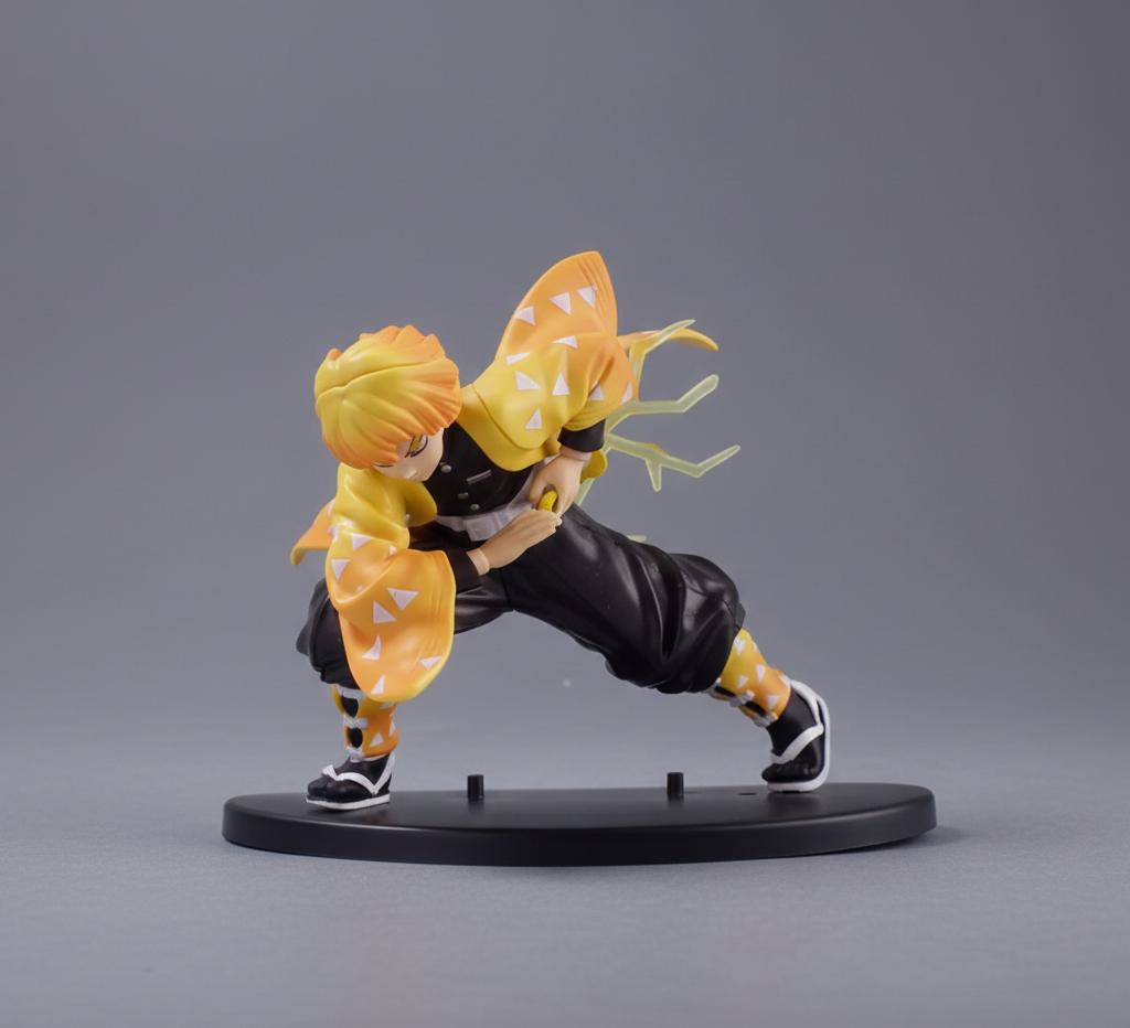 Based on a careful visual analysis of the provided figure, this premium collectible captures the electrifying intensity of Zenitsu Agatsuma during his most iconic battle sequence. Often known for his comedic and timid nature while awake, this figure immortalizes his transformation into a focused master of Thunder Breathing. Recreated in the signature Thunderclap and Flash stance, the figure embodies the “locked-in” state where Zenitsu unleashes his singular, mastered technique with blinding speed and lethal precision.